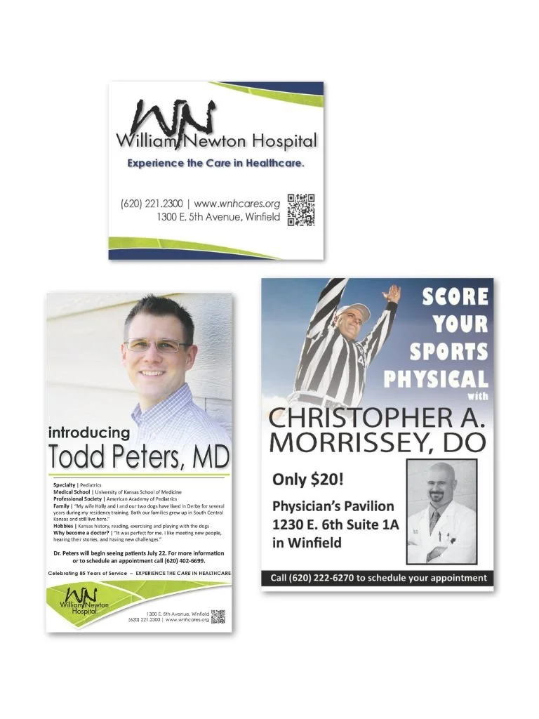 This hospital ran ads in the local newspaper announcing new doctors and promotional deals for timely healthcare services.