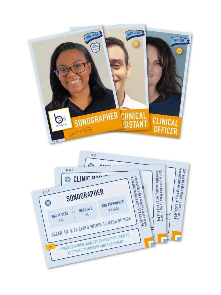 These double-sided cards were written and designed to mimic baseball trading cards while communicating the benefits of hiring this company’s team. They were paired with Big League Chew Bubble Gum at the company’s expo table. This was a collaborative effort with a graphic designer.